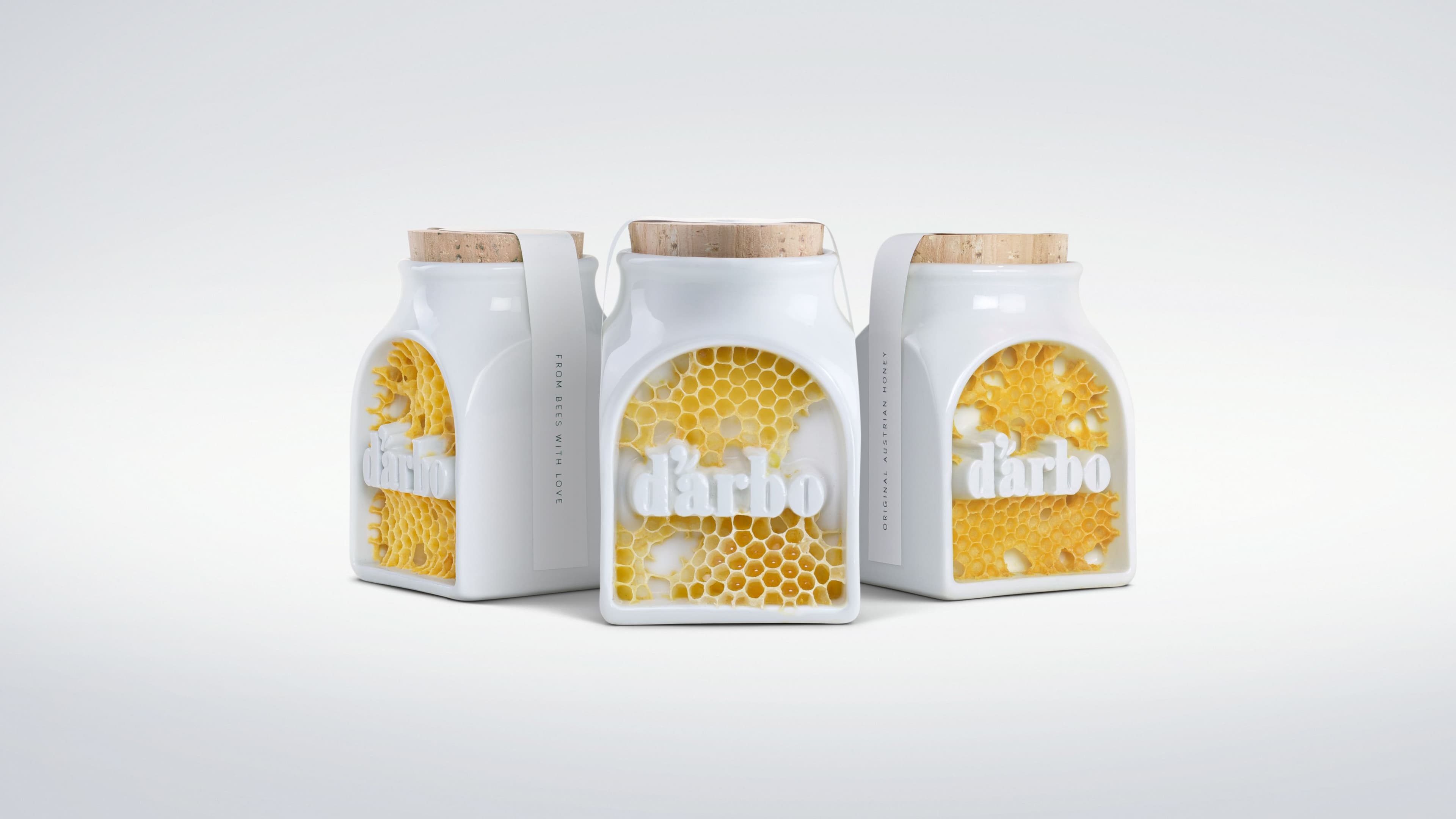 Die Besonderheit von Darbo-Imkerhonig liegt in seiner Reinheit und Natürlichkeit. Um dies hervorzuheben, haben wir die ersten hundertprozentig organischen Etiketten von österreichischen Bienen herstellen lassen. Dazu wurden spezielle Porzellangefäße entworfen und an Darbos Imkerinnen und Imker geliefert.